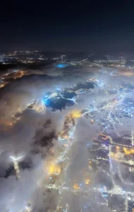 The weather remained mild to cool, though dense fog reduced visibility in several areas, covering much of the city and the surrounding mountains.